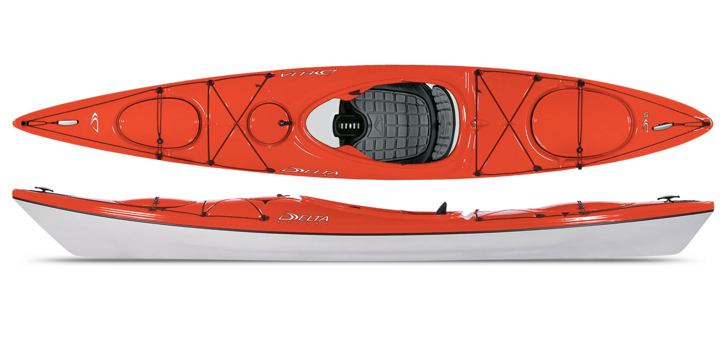 all-day comfort. Setting it apart from other open cockpit kayaks, our Fusion Hull design offers effortless glide, precise handling and exceptional stability. Whether you’re a novice, angler, photographer or paddling enthusiast it’s the perfect platform for your next adventure. It offers plenty of space for gear and puts safety first with two sealed hatches at the bow and stern. Feature rich with Delta’s multi-position Contour II Seat System, quick and easy Press-Lock hatches, recessed bungee lines and dual density comfort carry