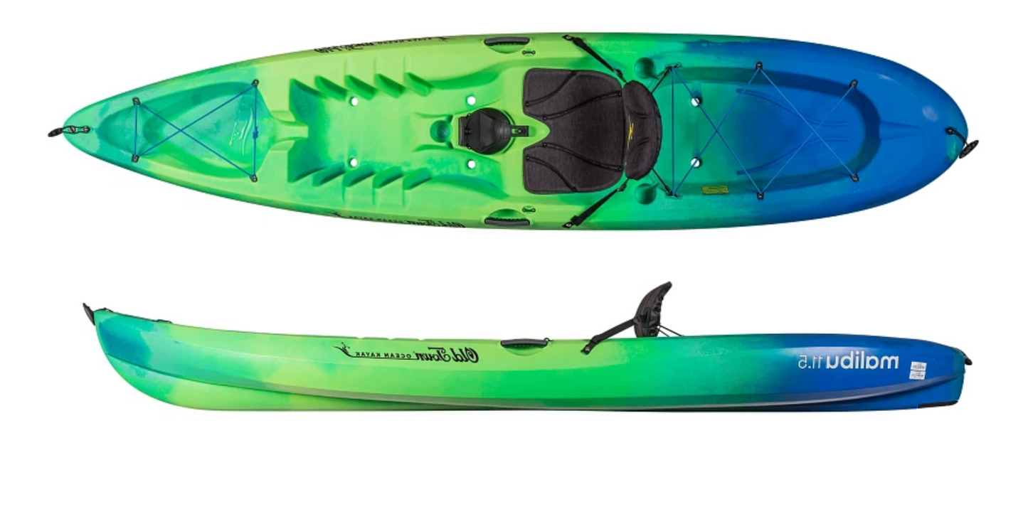 Have a blast atop our Malibu solo series! It's all about fun and comfort in this easy-to-paddle kayak. These compact, stackable, agile kayaks will turn heads as you master the waves with ease on our super-stable 11.5' hull design. Comfort comes easy on the Malibu, thanks to the AirGo™ molded-in seat and seat pad with an adjustable AirComfort™ backrest. No matter your size, enjoy comfortable leg room with calf rests and molded-on foot wells. Don't forget your beverages to go with your three cup holders!