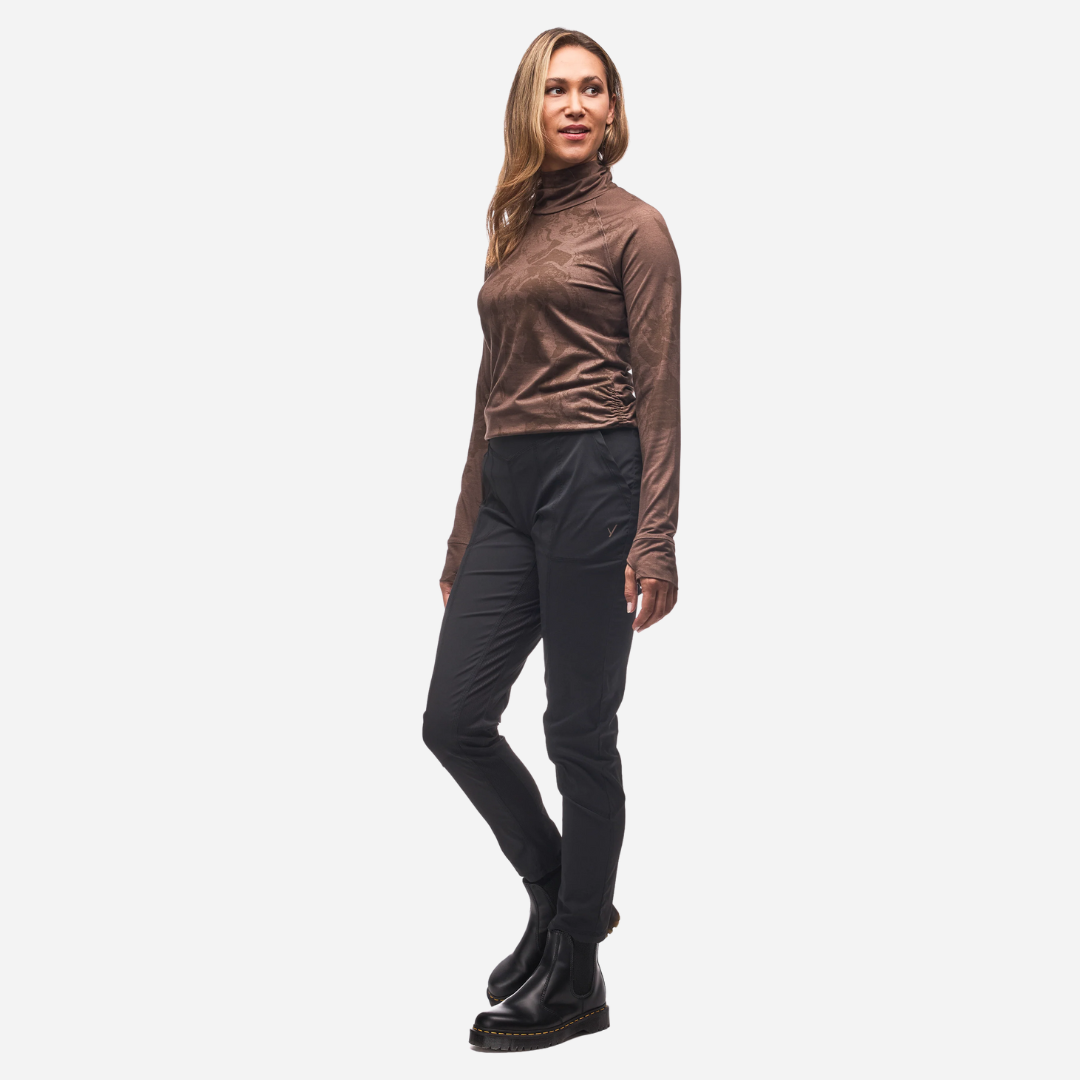 The perfect pant to help fight the frigid days of fall, keeping you warm even through the winter. A straight leg shape makes it easy to pair with any footwear, whether for the cabin or through the snow, and its drawcord belt system with snaps wears smoothly under a sweater or with baselayers. With a softshell exterior that resists inclement weather, backed with ultra-soft fleece that comforts skin as it brushes through movement, the Yumalina dares to brave the cold, so you can accomplish more in the freezing seasons.