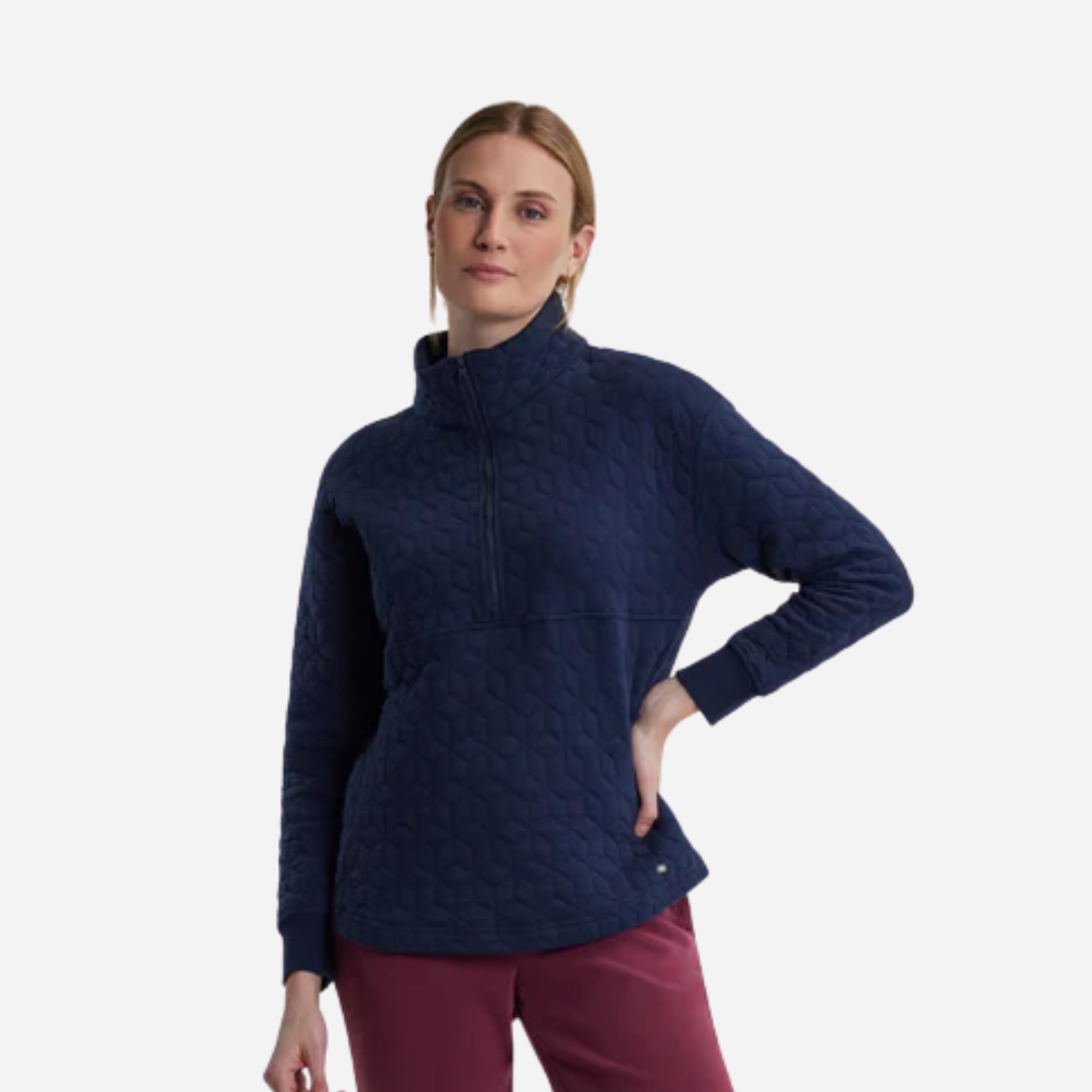 The perfect sweater for cozy days at the cabin or nature getaways. Made from Air-Quilt™ fabric, it blends warmth, softness, and laid-back style. Its relaxed fit and zip-up mock neck offer an enveloping sense of comfort - perfect for bundling up by the fire. Dropped shoulders, ribbed cuffs, and rounded hem for a high-quality finish.