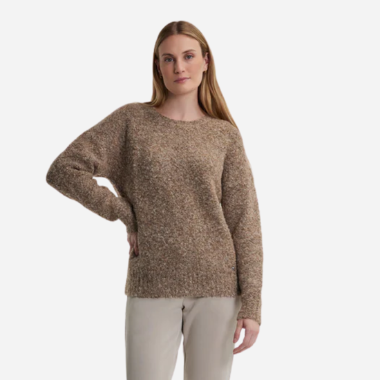 A popular favorite, this stretchy and silky soft speckle knit round neck sweater is where versatiliy, confort and style connect. Dropped shoulder sleeves with quality finished rib details at collar, cuffs, and hem.