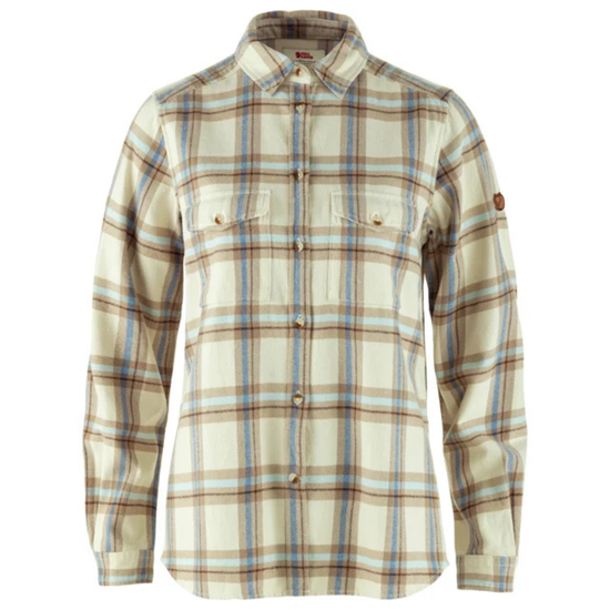 Comfortable, warm long-sleeved shirt in flannel made with recycled wool. A women’s version of the classic Canada Shirt, with a feminine cut and softer fabric. Details in G-1000 on the inside of the collar, cuffs, pocket flaps and front opening. Works well as both a light jacket on mild autumn days and as a robust insulating mid layer over a base layer top.