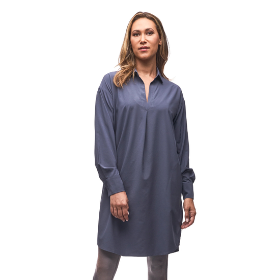 - Versatile long-sleeve dress, comfortable and lightweight. Dries quickly. Adjustable sleeves with snap buttons.