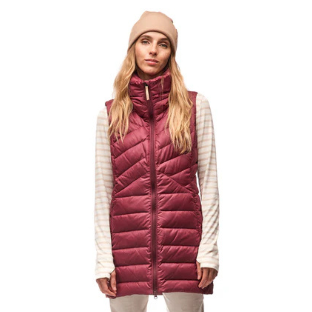 - Full zip sleeveless tunic with stand-up collar. Secure zippered pockets.