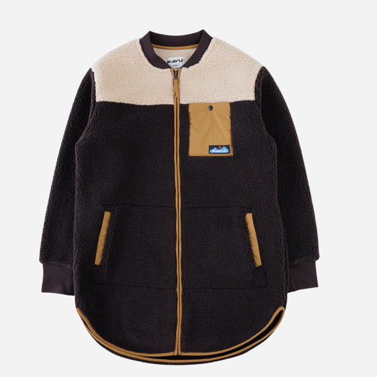 - Body fabric is made from warm, retro-inspired 100% recycled polyester double-sided shearling fleece