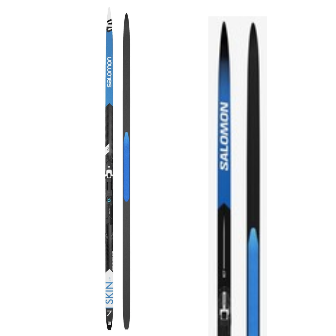 Salomon's RC7 eSKIN skis allow you to enjoy excellent classic performance without the daily chore of waxing. The eSKINGRIP+ insert guarantees a secure and precise grip as well as fast and silent gliding for skiers who demand optimal performance on different types of snow. They are supplied with pre-mounted Shift bindings.